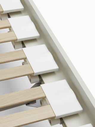 Studio Willen Simple in its visual expression, the bed is based on Riposa's core competency: outstanding sleeping comfort. The insert frame has been an important product in the company's portfolio for many years. Aluma embodies the fusion of insert frame and bed, making it possible to reduce the use of material dramatically while maintaining the same quality standards. The opulently shaped, low-lying headboard characterizes the design. The bed remains what it has always been: a frame and stage for its contents.