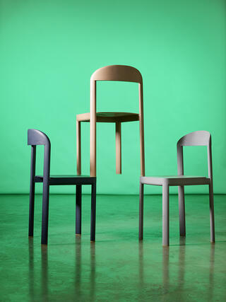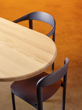 This is a lightweight solid wood collection. Conceptualized as a chair family, the CURV chair is available with and without armrests and the CURV table in 3 different shapes. The interplay of deliberate simplicity and surprising design details, gives the chair its special character. The simple, straight lines of the CURV chair contrast with the soft curves of its solid wood elements. This interplay of finished and raw material creates a formal tension within the technically sophisticated construction of two bended solid wood pieces. All components of the chair are formally identical – only the two backrests vary in shape and height. Designed for private as well as public spaces, both chair versions can be harmoniously combined. The chair is made of ash and is available in all 11 shades of the Stattmann colour range.