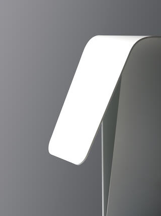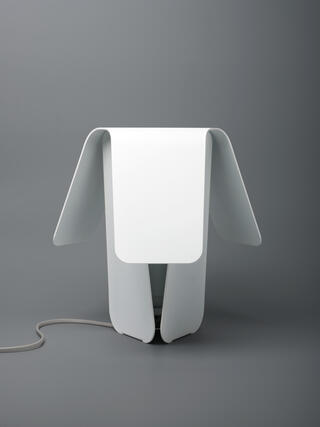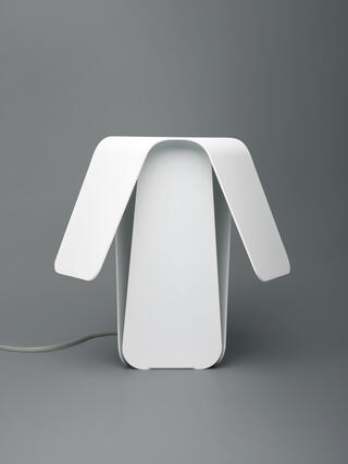 Felix Wey The table lamp is a design for the 75th anniversary of the Swiss metal works company Schätti. The concept is simple: it consists of three identical parts and a hat, made from 1.5mm strong sheet steel. It is unusual to use sheet steel as a material for such a product. The material determines the shape and character of the lamp. Since it is not translucent, the metal plays with the reflection of light on its surface. The name DRI (Swiss German for ‘three’) refers to the trifoliate shape as well as to the three brothers in the third generation of entrepreneurs at Schätti Lamps.