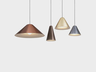 Melanie Hofmann, Atelier Pfister The main idea behind these lamps is their universal usability. With their different proportions, the four shades can be used as hanging lamps, desk lamps, standing lamps, or wall lamps. The lamp shades made from aluminium foil can simply be suspended from poles of various length or inserted into a wall fixture, without the need to use tools. In the interior of the shades, reflectors with circular surfaces in various inclinations trace the flow of light. The different angles of the sheets create a fascinating image composed of various shades. Lavin comes in a range of different eloxal colours or as a classic version in white.