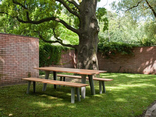 Primavera extends the solid wood collection Tossa and opens up new possibilities. The combination between the materials wood and fibre cement is unusual, aesthetic, and highly interesting in terms of production technology and ecology. Fibre cement is a robust material which is moisture resistant and consists almost exclusively of minerals and water. It exists in exterior spaces. The raw appearance of the mineral material has a close relationship with solid wood.