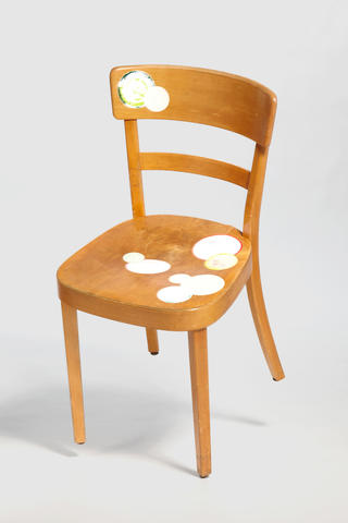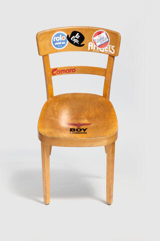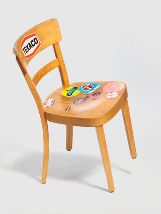 Sandra Kennel Thirty years ago no one was really interested in this chair. It was no more and no less than a comfortable chair. Far removed from the design-interested public it served its purpose in countless old Swiss restaurants. With these stickers, it goes on a journey through time once more, away from style and design. Edition: exquisite stickers from the 1970s.
