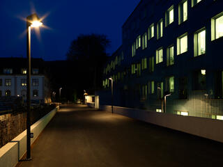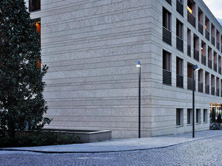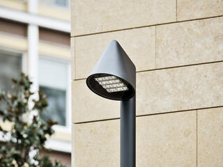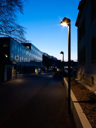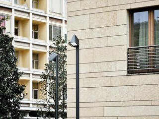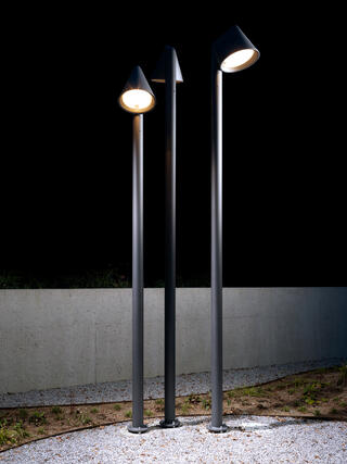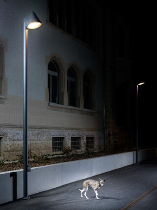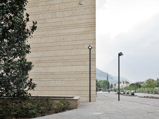 Milo Keller, Oskar Da Riz/ewo The lamp UN was created in 2010 on behalf of the Swiss energy company Axpo. The architects Meier Leder initiated the development of a “plan lumières” on the site of the company’s main seat in Baden. Part of the plan was the design of a street lamp specifically developed for the site. The aim and theme of the design was the sculptural formulation of the connection between mast and lamp head. The shape of the lamp head follows the directionality of the light. Initially developed as a reflector lamp for conventional light sources, in 2012 the UN found its way into the collection of the Italian lamp producer ewo. Today, the UN is exclusively produced and distributed with LED light sources.