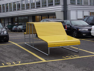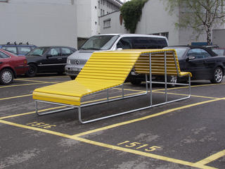 Niklaus Spoerri The car is one of the most dominant products in the public space, and also the only one that requires optional space in the form of parking. In our design, the bench is seen as a place rather than just a seat. Camouflaged as a car, it occupies the corresponding open space.