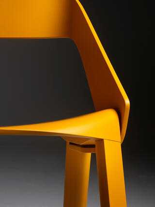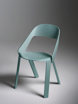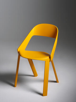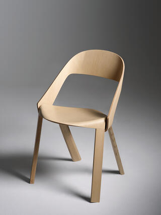 Moulded plywood shapes the aesthetics of this chair. The seemingly free lines follow the requirements of its construction. The four edges of the seat are bent downwards to receive the pairs of legs and the backrest on the outside. Moulding plywood into shape is an old technique which has been rapidly developed following the introduction of CNC milling technology. Complex parts can be inserted into the moulding machines and pressed directly together with the plywood, resulting in new options for moulding and construction. The core element of the chair Wogg 50 is a piece of moulded wood which has been pressed into place underneath the seat. The connection with this core, in combination with the way in which it is moulded, give the backrest an elastic bounce. The chair is light, extraordinarily comfortable, and stackable. The Wogg collection ceased production of this chair in 2021.