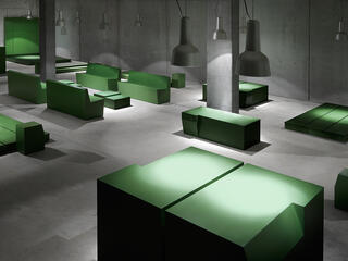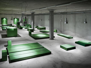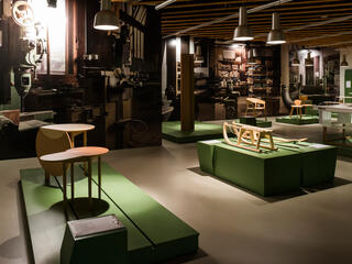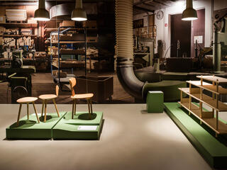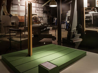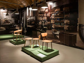 The Association of Swiss Master Carpenters and Furniture Makers launched the “Wood Award” on the occasion of its 125th anniversary. The nominated objects are presented on pedestals. These stylised cubic shapes with minimalist faceting are varnished with the RAL shade green 6011. For a long time this shade had been the standard colour for woodworking machines. Besides the selected objects as the main actors the exhibition consists of three elements: the pedestal, the work drawings as an extended legend explaining the objects on display, and the light. The production process is an integral part of all of the objects. The idea is that visitors to the exhibition find themselves within the atmosphere of a wood workshop.
